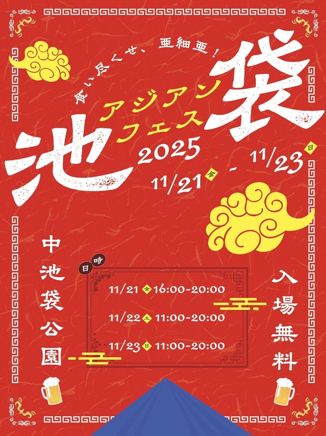 池袋の中心にある中池袋公園を会場に開催される都市型フェスで、アジアのフードをはじめとした異文化に触れられるイベントです。多彩な料理や文化体験が並び、来場者を魅了する活気あふれるコンテンツが揃います。出演アーティストによるパフォーマンスも行われ、会場全体が国際色豊かな雰囲気に包まれます。