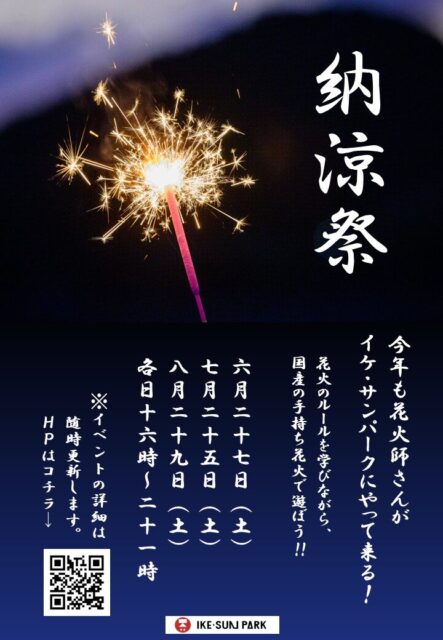 東京・豊島区で6月から8月に開催されるファミリーイベントとして、IKE・SUN PARKを会場に実施される納涼祭2026は、国産の手持ち花火やこども縁日、学生屋台などが行われるイベントです。